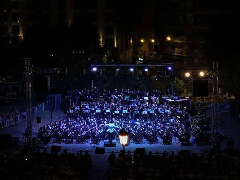 On the Saturday night of this week, we went into town late to grab a drink and some tapas, pop into the City Hall patio and watch some dance in Plaza Bib Rambla, before making our way down to the large area outside the Palacio de Congresos. Everything was so seamless! We got to the Palacio de Congresos at around 11:15pm to see the tail end of a concert provided by 4 district brass and woodwind bands, and heard some amazingly dramatic music under the stars and in temperatures still topping 30 degrees. We sat on the steps of the Congress Hall, with glimpses of the illuminated Alhambra behind us, and the stage in front. At midnight, the concert was over and the pyrotechnics began, and what a display it was. We felt as if we were part of a special invitation-only audience, and after 15 minutes the audience started to disperse, calmly filtering off to bars and restaurants to continue with the night. We nipped down the stairs and into the car park below to get our car, and drove out of the city in the space of 5 minutes - no traffic, no crowds; all as if the event had never taken place.