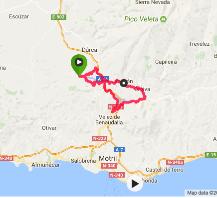 My current favourite loop takes in the old motorway to the Mediterranean coast to Motril (which is pretty much empty now there is a bigger, better motorway running parallel) then the south side of the Alpujarran valley, across to Orgiva, up to Lanjaron and up again to Talara, the mouth of the Lecrin Valley and back to our village. It's about 3 hrs; I like to stop in Orgiva for a coffee before the big climb.