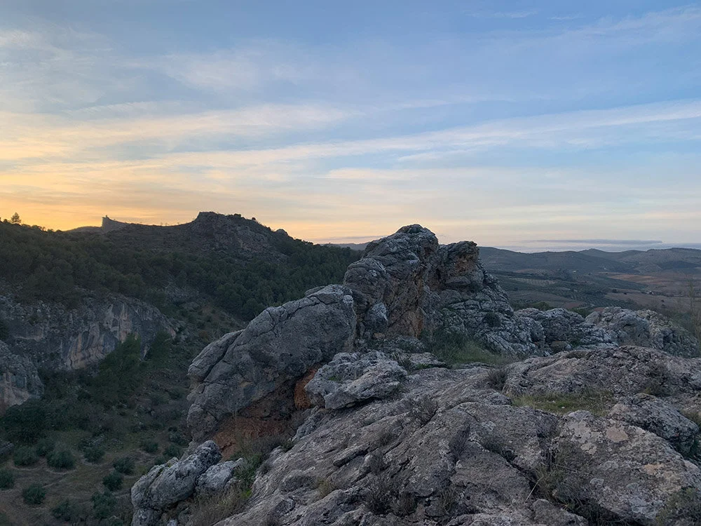 There is something truly magical, mysterious, eery and majestic about these places. The breathtaking views are beyond description, and there is a silence broken only by the sound of birds or the whisper of a high breeze. The valleys below hold delicate veils of mist or woodsmoke. There can be no denying that these places have seen history at its bloodiest. The 700 years since these towers were built are insignificant when you consider that, thousands of years before the Moors and the Christians fought over these lands, there were people living in the many caves punched into these strategic land formations. The huge grey rocks that have been shaken from loftier heights by earthquakes or erosion over time seem to all tell their own stories, and there is something strangely surreal about seeing birds flit over this prehistoric place. Modern farm machinery shaking olives from trees far below us seems at odds with a landscape that was created and moulded so long ago that we can barely comprehend.
