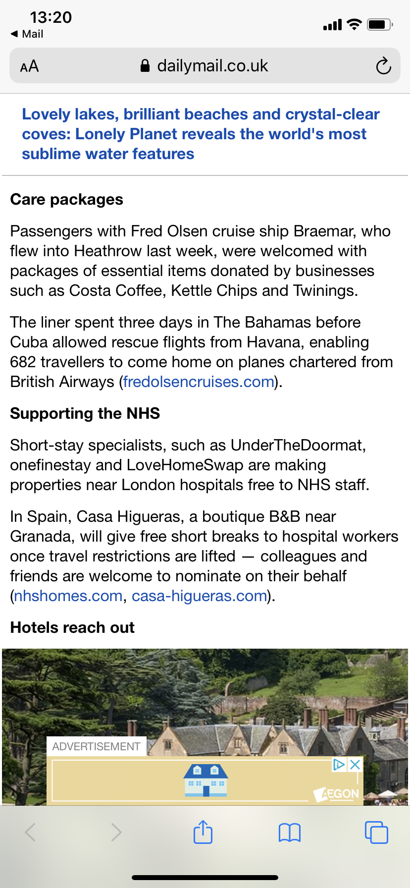 Both articles should give us momentum for next week, as this is a story that should continue and is aimed to give us some hope that people will start to travel again once this wretched Coronavirus crisis starts to calm down. Some of the messages we have been receiving from NHS staff have been really heartwarming, and if we are able to give them something back for their incredible dedication then that is the very least we can do.