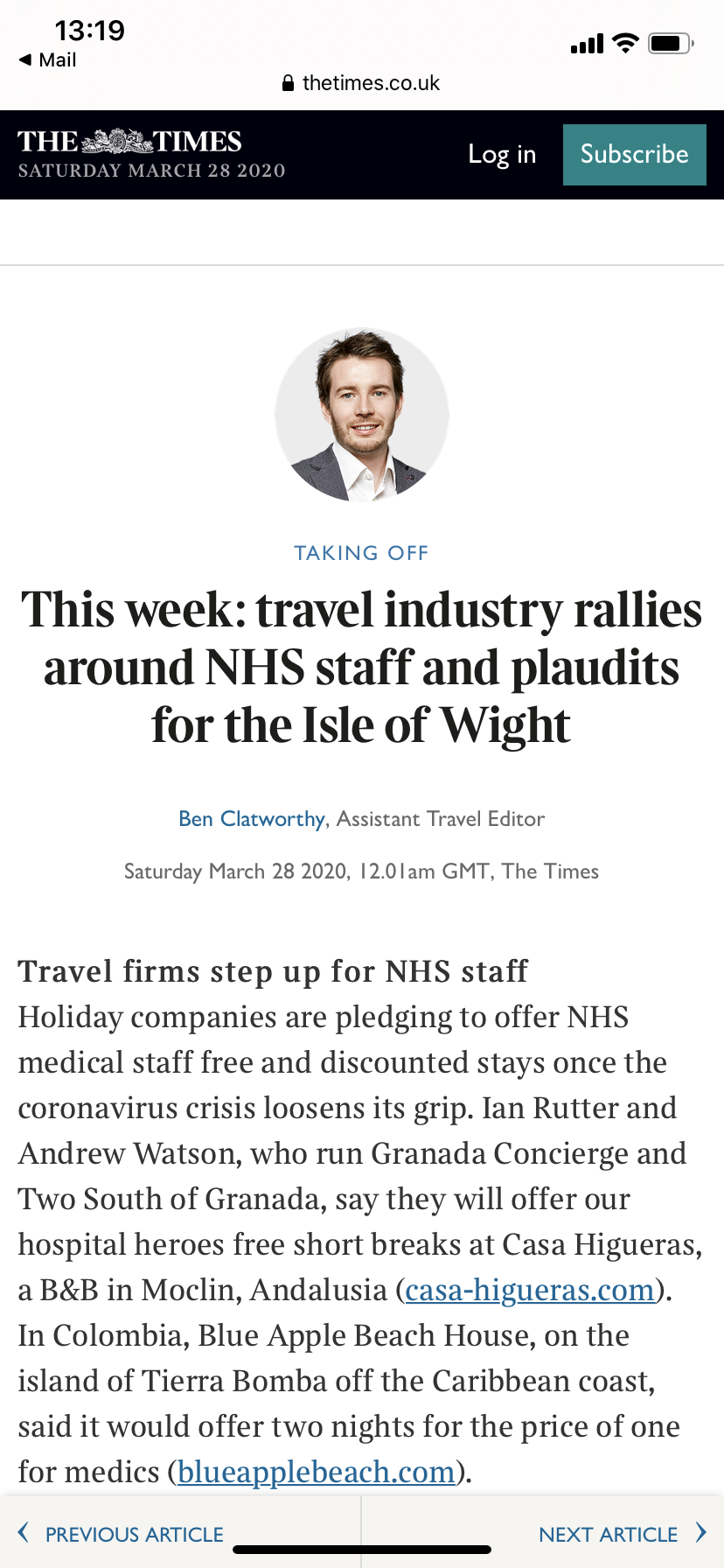 We should have been very excited this morning, as Casa Higueras was featured in two national newspapers as a result of our initial publicity launching our #MyTravelPledge campaign last weekend.