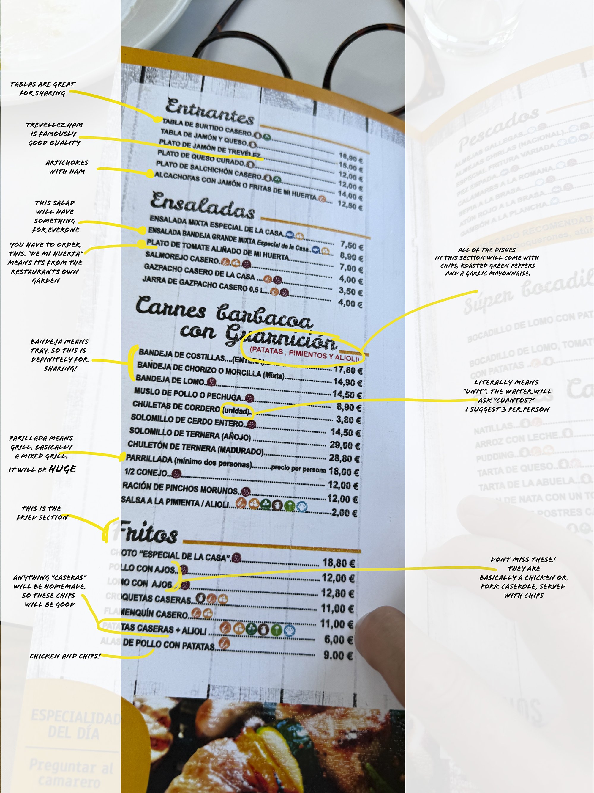 We do, however, hear some negative feedback from guests and these are the top three we hear time and again. Interestingly, all to do with food and we can completely understand why. So here are top tips to get the best out of Spanish dining experience and how to navigate a Spanish (specifically Andalucian) menu.